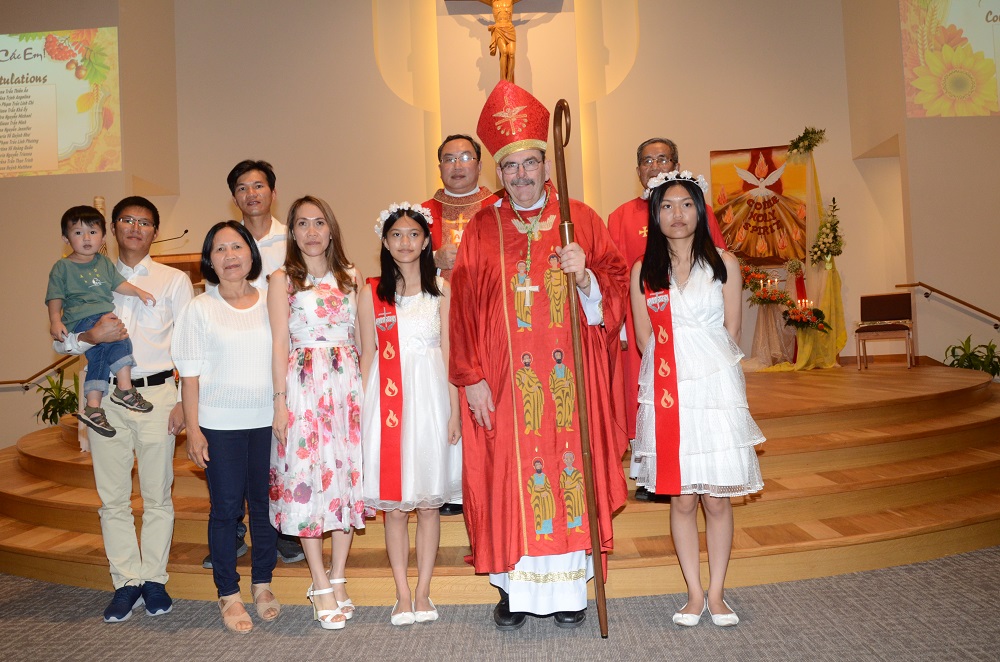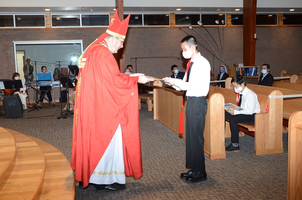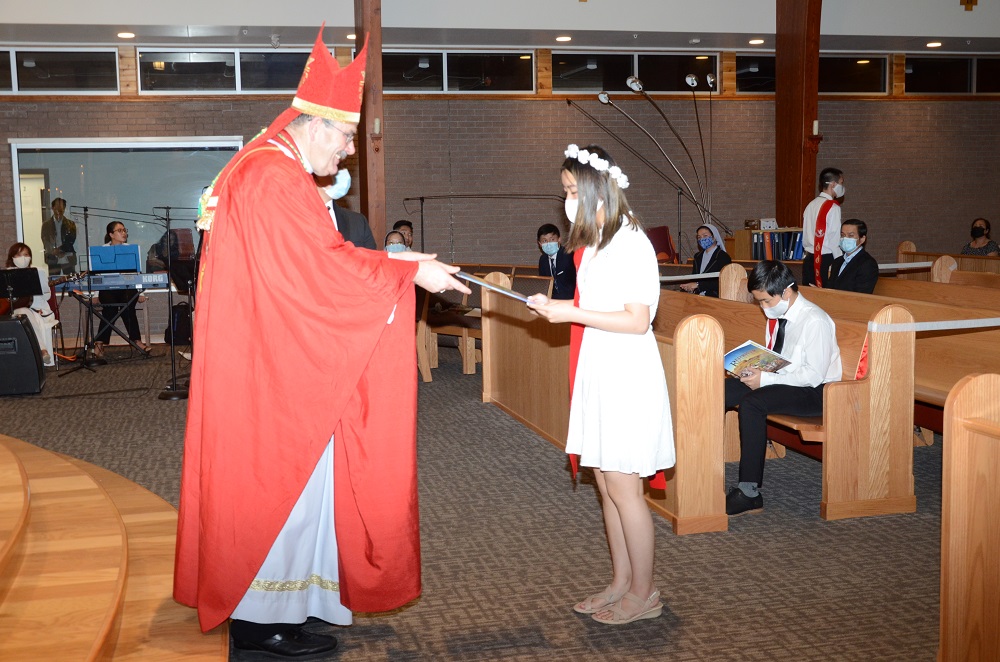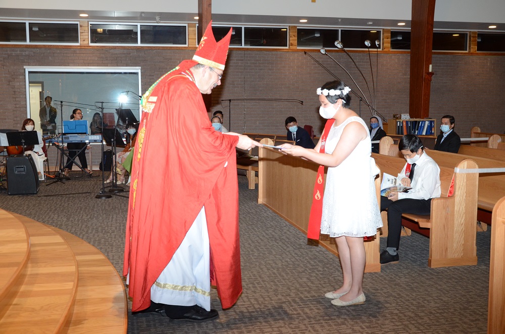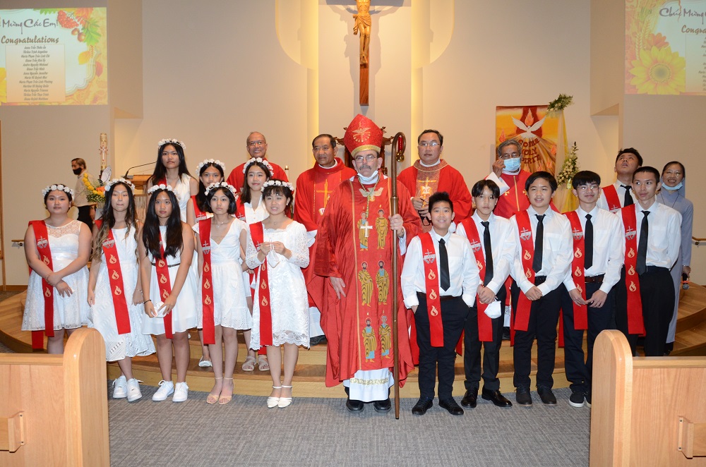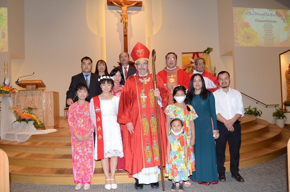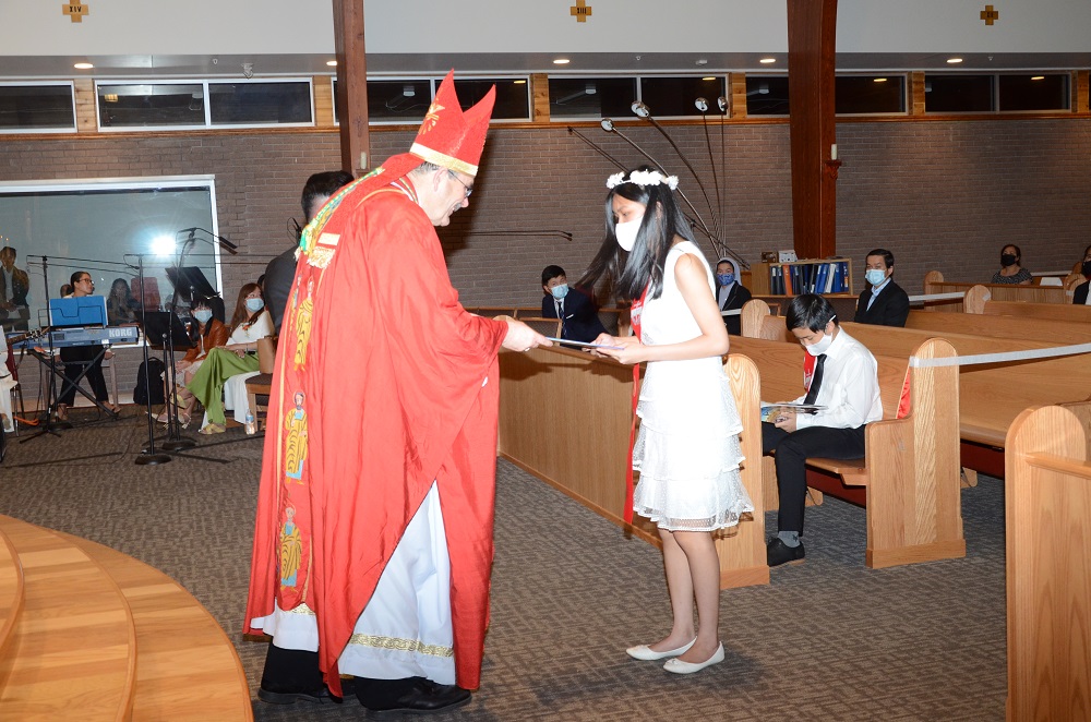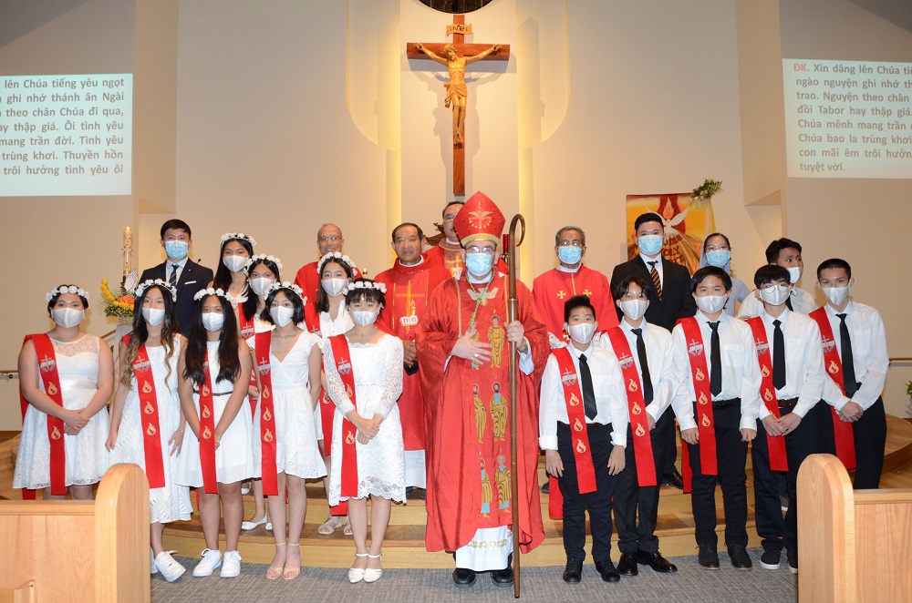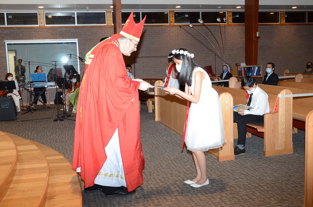 Thánh Lễ Ban Bí Tích Thêm Sức cho 14 em ngày 3/9/2021, do Đức Giám Mục Albert Legatt chủ tế tại giáo xứ Thánh Minh, Winnipeg, Canada.