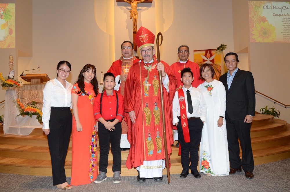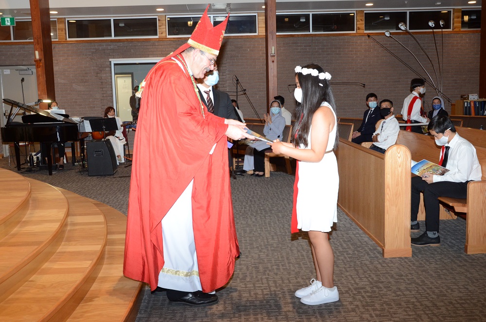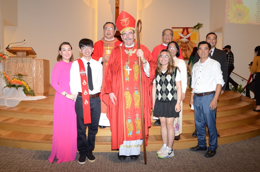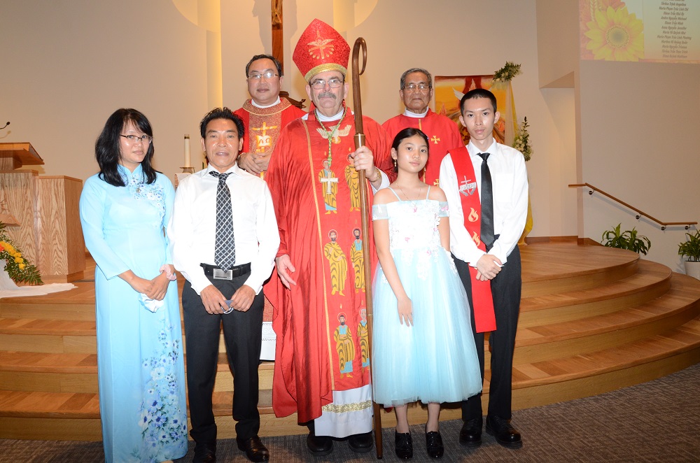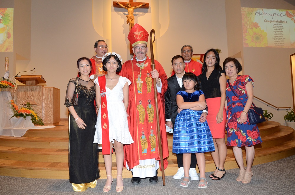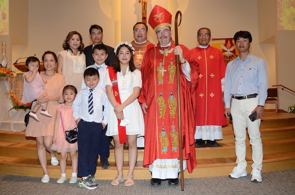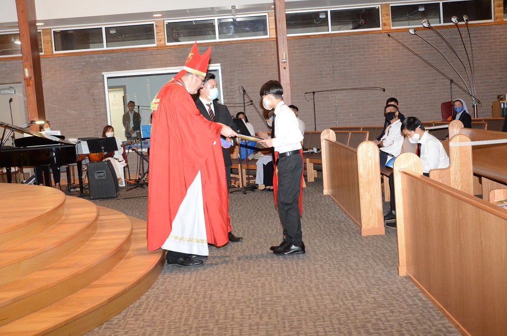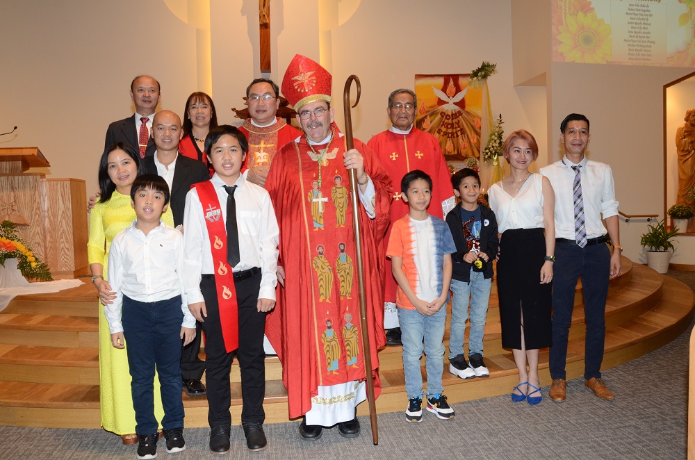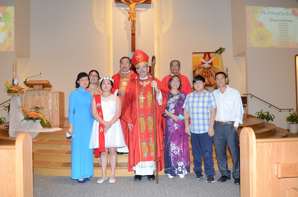 Thánh Lễ Ban Bí Tích Thêm Sức cho 14 em ngày 3/9/2021, do Đức Giám Mục Albert Legatt chủ tế tại giáo xứ Thánh Minh, Winnipeg, Canada.